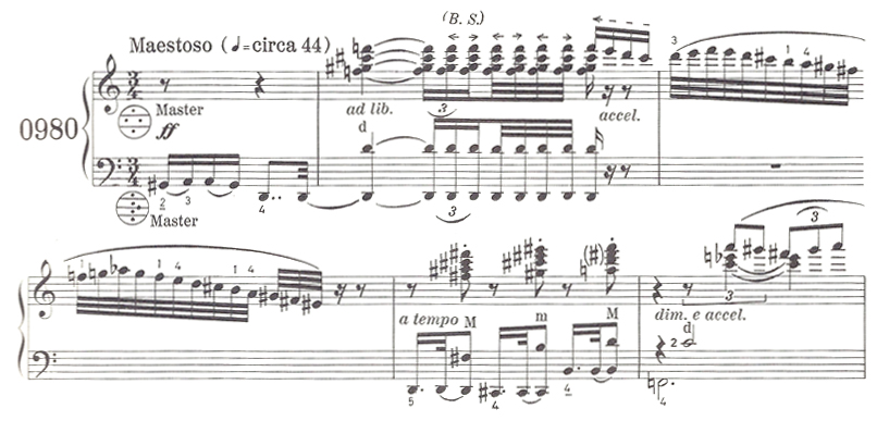| A calmer, rich, dark, searching melody in the bassoon register (Ex. 2) intervenes between the splashy opening and another similar outburst before a dizzy, swirling run plunges into the somewhat jazzy, almost drunken dance in D major and 9/8 time (Ex.3), dominated at first by the Lydian mode (a favorite scale of Creston, which in this instance is built upon a D major scale with a raised fourth note, G sharp in place of the usual G natural). |