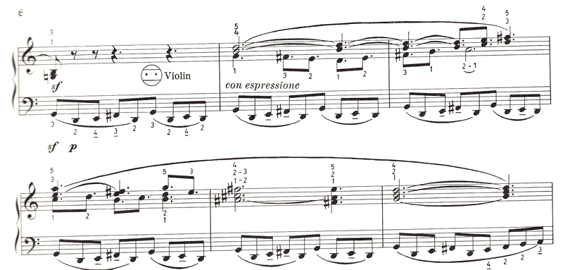 | Except for a rather "pretty” middle section in the violin register (Ex. 4), the heavily accented Dance drives itself incessantly to a climatically wild and joyous end. |